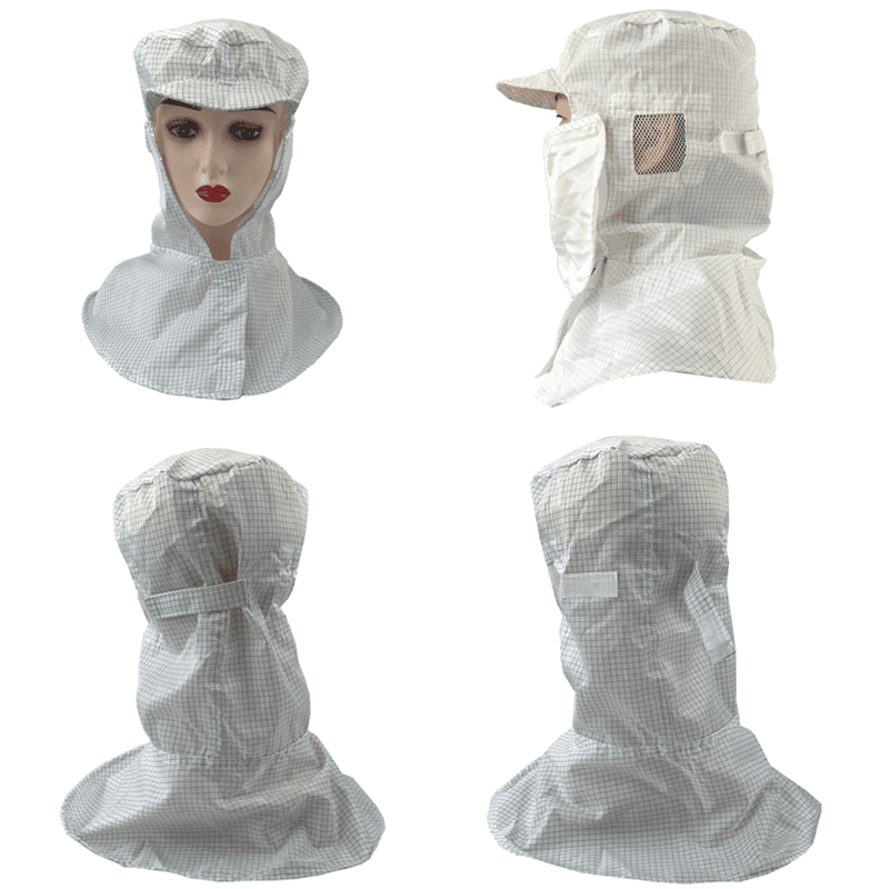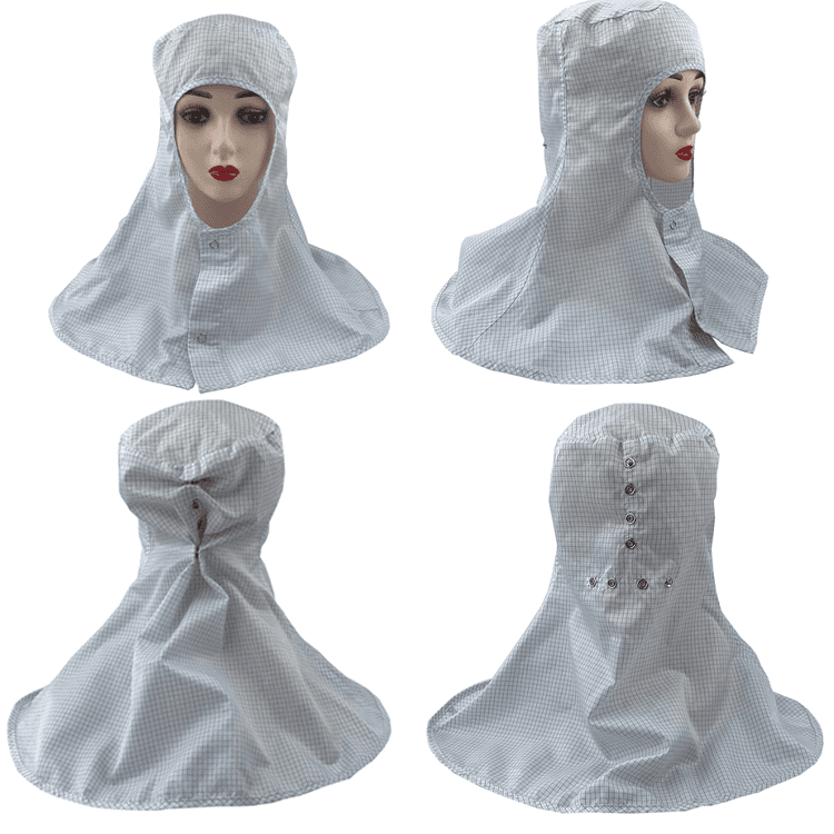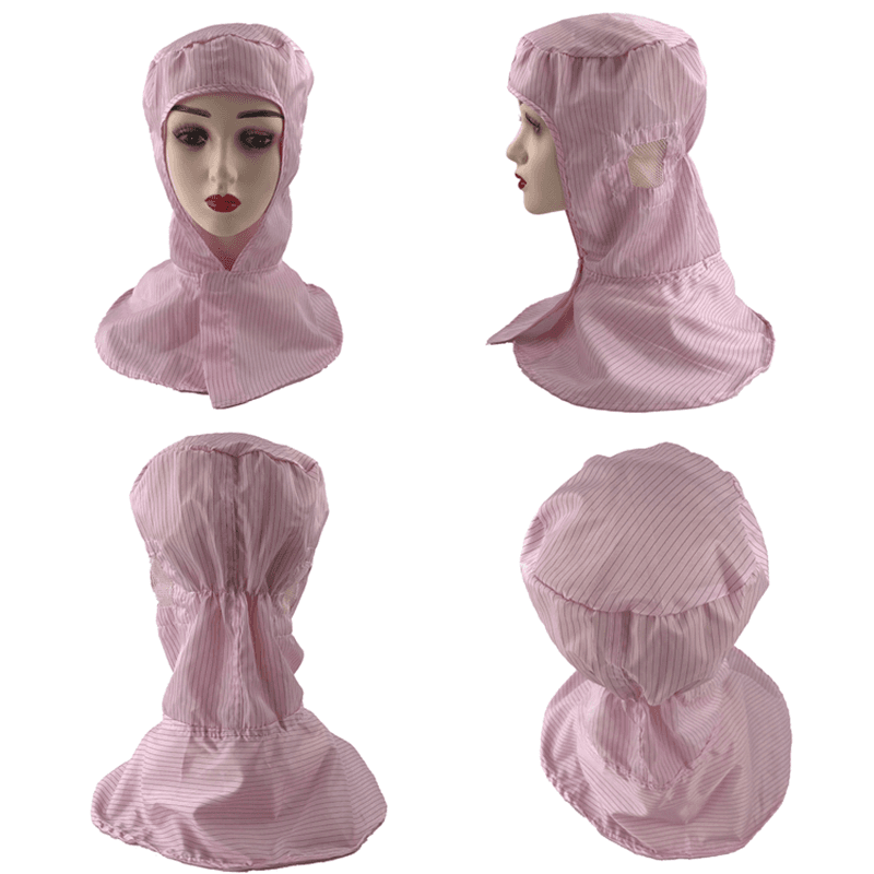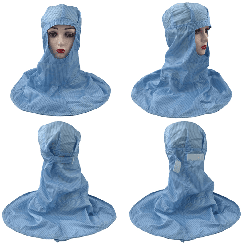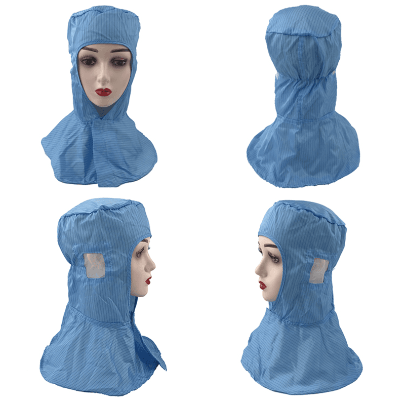Ang ESD shawl cap ay gawa sa de-kalidad na mga anti-static na materyales, na maaaring epektibong maiwasan ang epekto ng static na kuryente sa mga operator at maiwasan ang pagkalat ng static na koryente sa kapaligiran ng pagtatrabaho. Maaari itong epektibong ibukod ang mga mapagkukunan ng static na koryente at mabawasan ang henerasyon at pagkalat ng mga static na partikulo, sa gayon pinapanatili ang kalinisan ng nagtatrabaho na kapaligiran. Ang anti-static function na ito ay partikular na mahalaga sa mga lugar tulad ng paggawa ng electronics, paggawa ng semiconductor, at mga operasyon sa laboratoryo na nangangailangan ng mahigpit na kontrol ng static na kuryente.