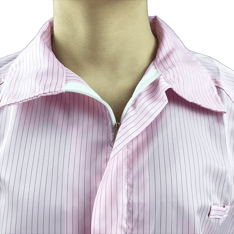 Ang mga dyaket at pantalon ng ESD ay idinisenyo upang magbigay ng mahusay na proteksyon ng electrostatic discharge (ESD). Ang mga ito ay konektado sa ground station sa pamamagitan ng mga built-in na coil wire upang matiyak na ang static na koryente ay maaaring epektibong gabayan sa lupa at maiwasan ang static na koryente mula sa nakakasagabal sa sensitibong elektronikong kagamitan. Ang tampok na electrostatic na ito ay kritikal sa pagprotekta sa mga elektronikong aparato mula sa mga epekto ng paglabas ng electrostatic.
