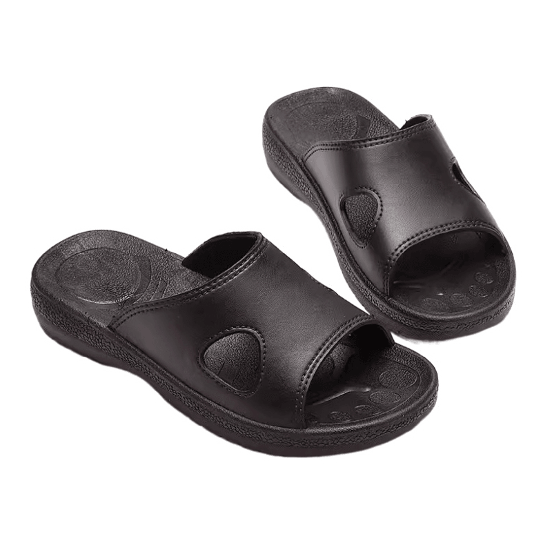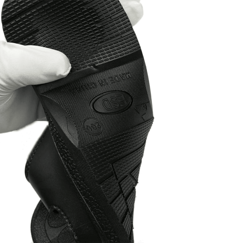 Ang mga anti-static na tsinelas ay pangunahing gawa sa materyal na SPU, na may mahusay na pagganap ng anti-static. Ang materyal na SPU (Super Polyurethane) ay may mahusay na kondaktibiti at maaaring epektibong gabayan ang static na singil mula sa katawan ng tao hanggang sa lupa upang maiwasan ang static na akumulasyon ng kuryente. Ang tampok na ito ay partikular na mahalaga para sa mga nagtatrabaho na kapaligiran na sobrang sensitibo sa static na koryente, tulad ng mga elektronikong workshop at malinis na silid. Maaari itong epektibong maprotektahan ang mga elektronikong kagamitan at sensitibong aparato at maiwasan ang pinsala at pagkabigo na dulot ng paglabas ng electrostatic.