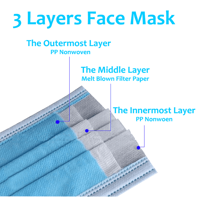 Ang aming mga hindi pinagtagpi na mask ay gawa sa higit sa tatlong mga layer ng mga hindi pinagtagpi na tela, at ang bawat layer ay mahigpit na na-screen at naproseso upang matiyak ang mataas na kahusayan na pagganap ng pagsasala at ginhawa ng mga maskara. Ang panloob na layer ay malambot at friendly sa balat, ang gitnang layer ay lubos na mahusay, at ang panlabas na layer ay hindi tinatagusan ng tubig at nakamamanghang. Ang disenyo ng multi-layer na ito ay hindi lamang mabisang mag-filter ng mga particulate matter at mga droplet sa hangin, ngunit mapanatili din ang paghinga at ginhawa kapag isinusuot sa loob ng mahabang panahon.