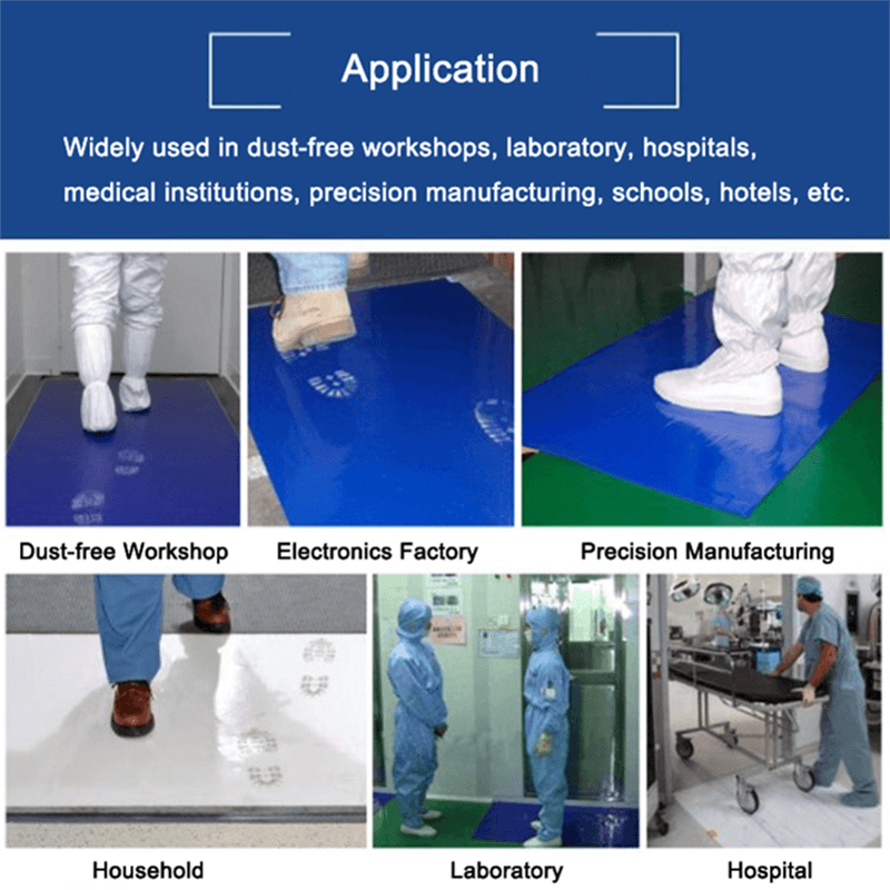 Opisina at Laboratory: Sa mga lugar na ito, ang mga malagkit na banig ay maaaring maiwasan ang panlabas na alikabok at mga pollutant na dalhin, tinitiyak ang isang malinis at ligtas na kapaligiran sa pagtatrabaho.